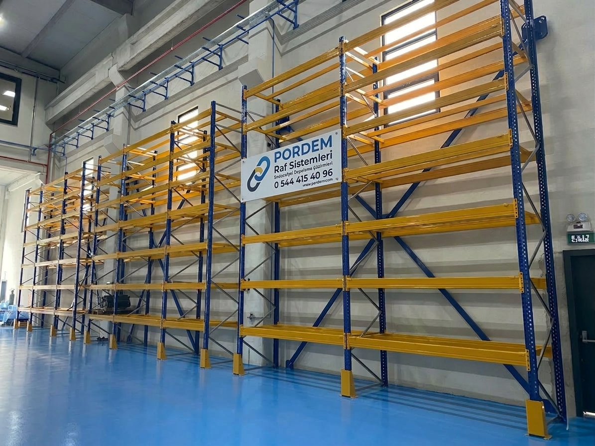 Bu sistemler, yüksek raf yapılarına sahip olup, yüksekliklerinin yanı sıra genellikle ağır yükleri taşıma kapasitesine de sahiptirler. Yüksek tavanlı depolama alanlarında yer alan bu sistemlerde, forkliftler veya otomatik depolama sistemleri gibi araçlar kullanılarak ürünler rafa yerleştirilebilir veya raf sisteminden alınabilir.